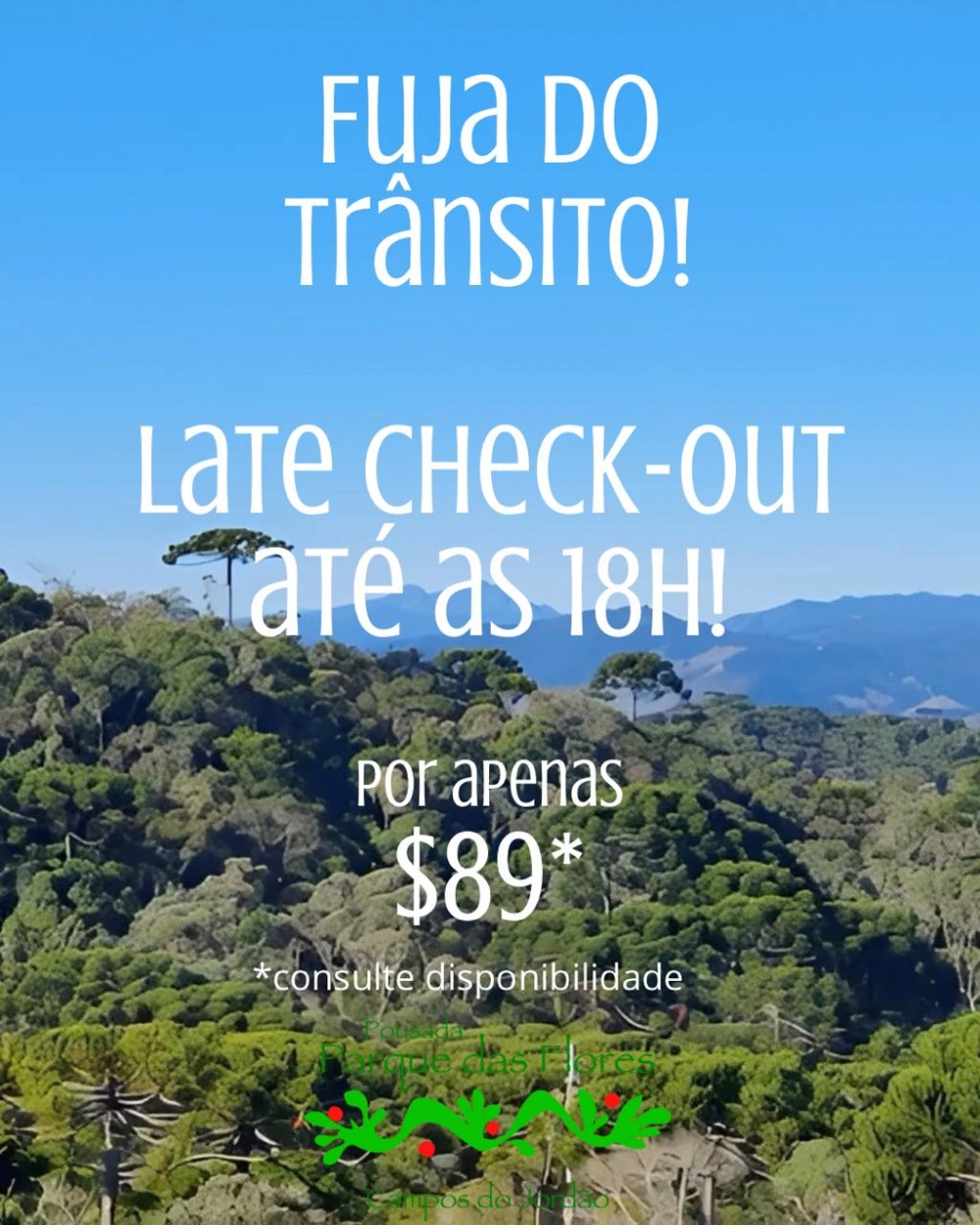 Imagine estender sua estadia em Campos do Jordão, curtindo cada minuto dessa cidade encantadora na Serra da Mantiqueira com mais calma… Agora isso é possível! A Pousada Parque das Flores preparou uma oferta especial de Late Check-Out por apenas R$ 89 — uma chance única de aproveitar ainda mais sua viagem!